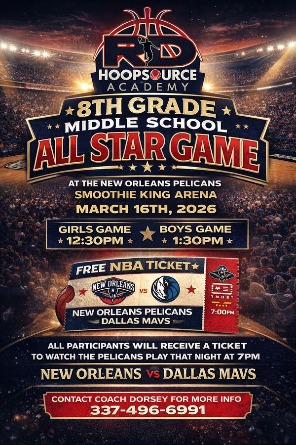 Submit your All-Star selections for the Girls and Boys 8th Grade Basketball Game in New Orleans, March 16 at the Smoothie King Arena. One vote per person. 🏀